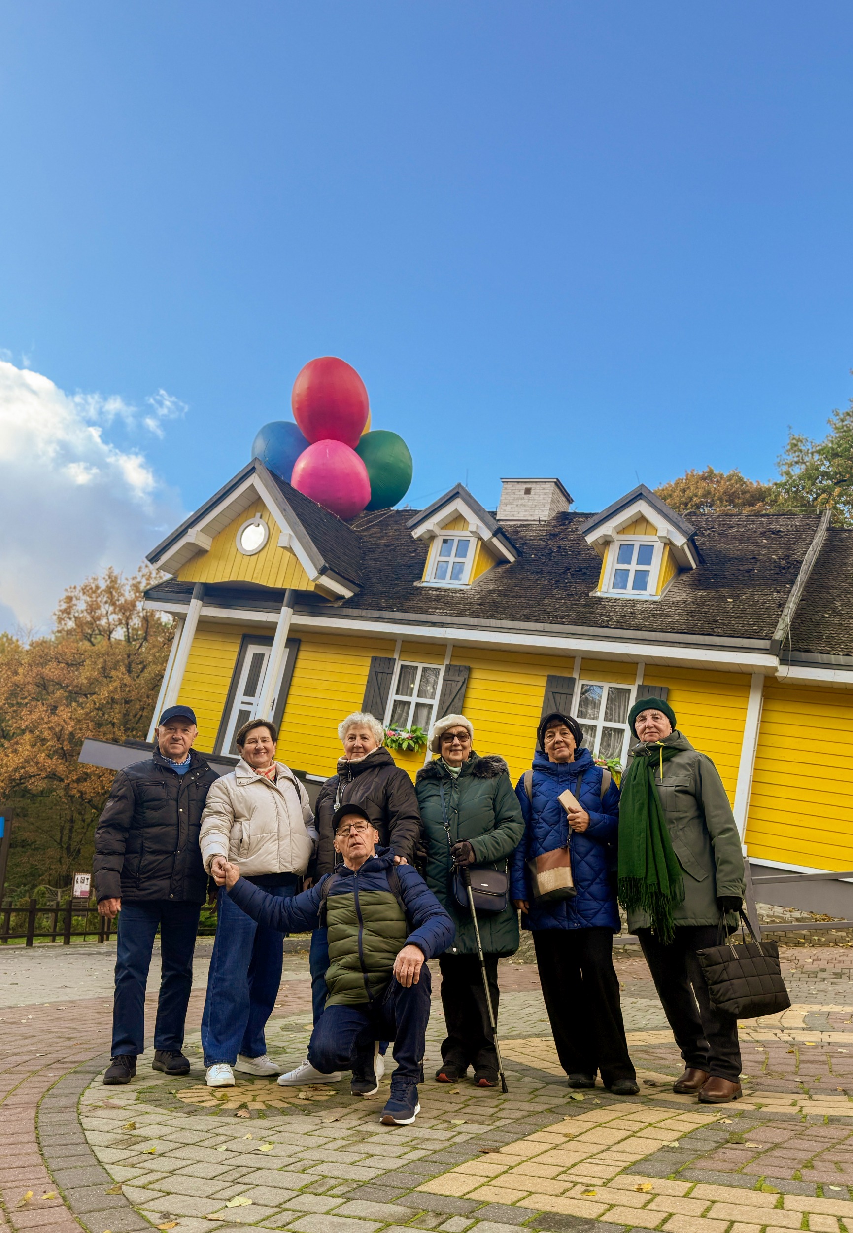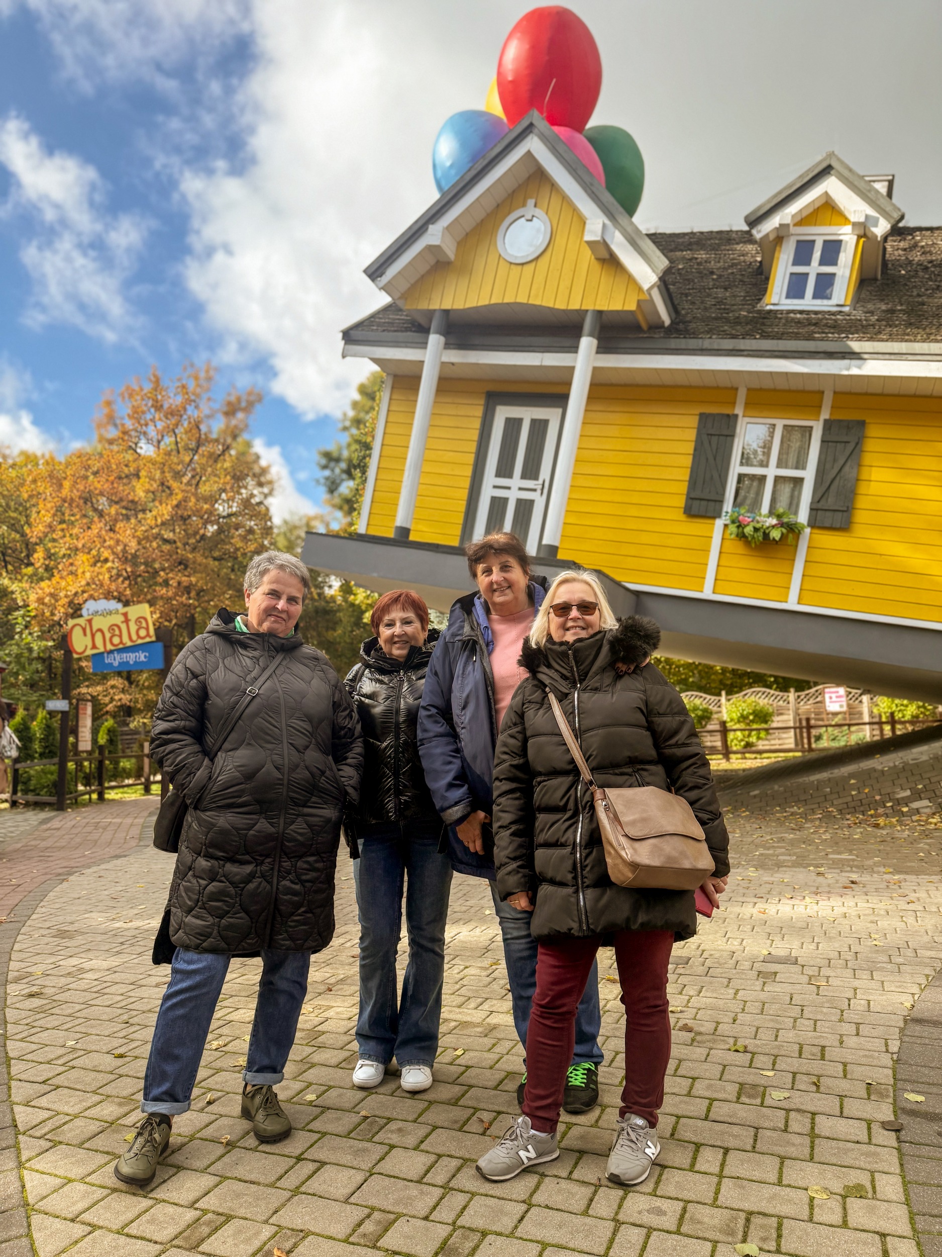 Podczas zwiedzania Seniorzy mieli okazję poznać tajemnice iluzji optycznych, odwiedzić Latający Domek, przejść przez Tunel Zapomnienia, a także sprawdzić swoją równowagę i spostrzegawczość w wielu kreatywnych instalacjach. Nie zabrakło również czasu na wspólną kawę, rozmowy i pamiątkowe zdjęcia w pięknym, jesiennym otoczeniu Farmy.