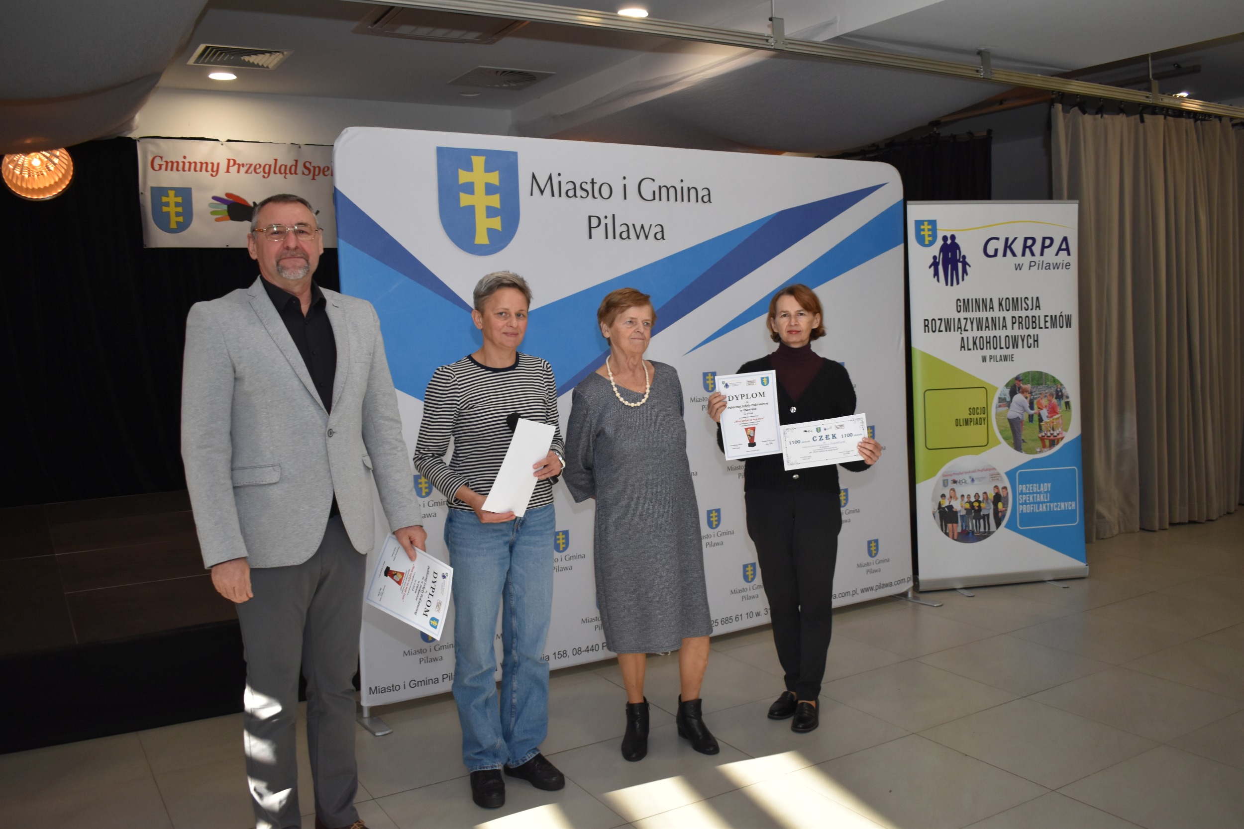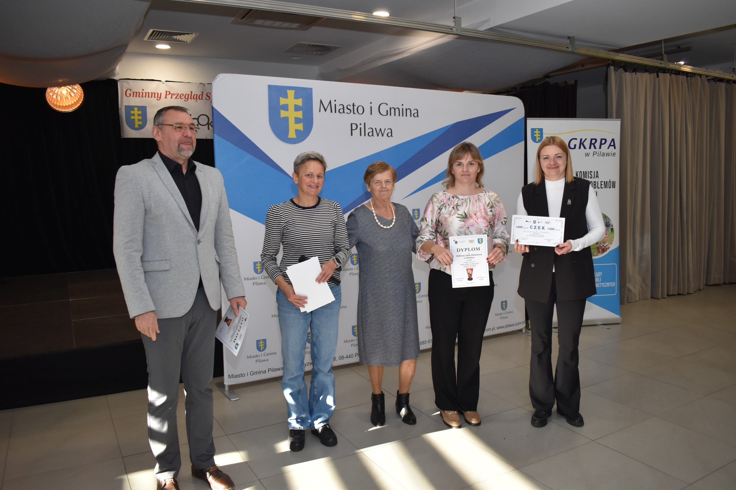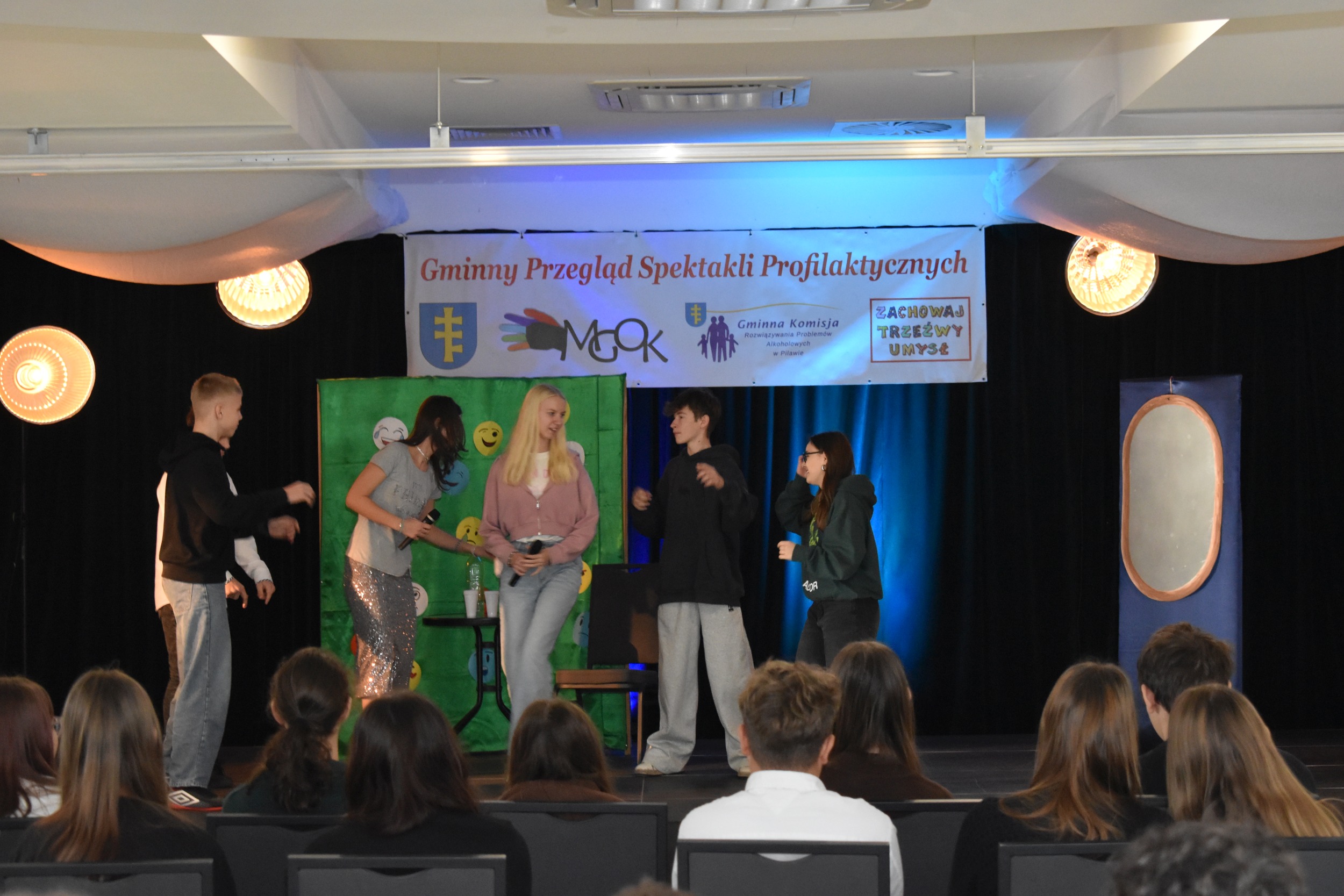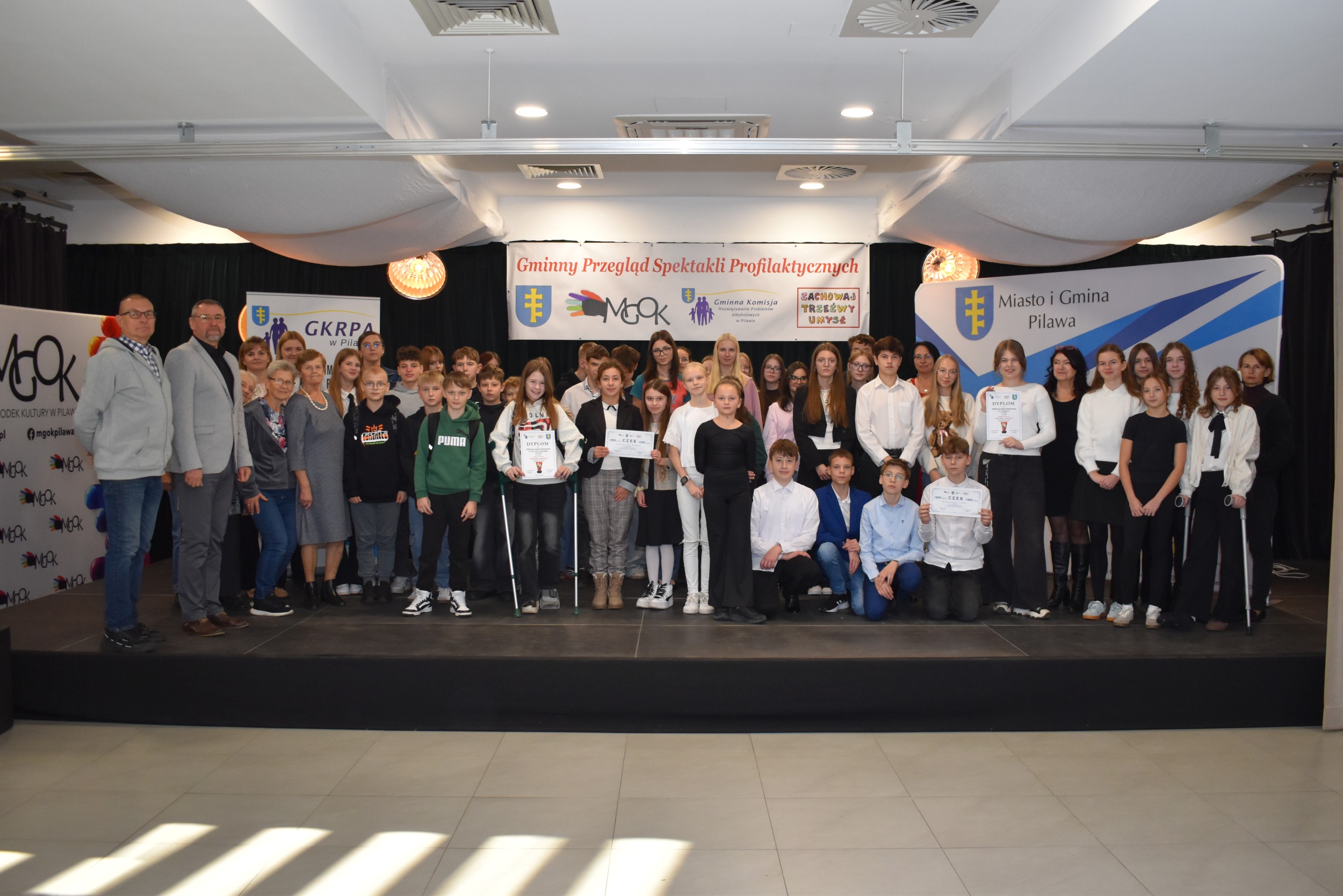 W środę 19 listopada 2025r. w sali widowiskowej Miejsko-Gminnego Ośrodka Kultury w Pilawie odbył się Gminny Przegląd Spektakli Profilaktycznych. Wydarzenie organizowane jest od kilku lat, w ramach działalności profilaktycznej i edukacyjnej wśród dzieci i młodzieży z terenu Miasta i Gminy Pilawa.
