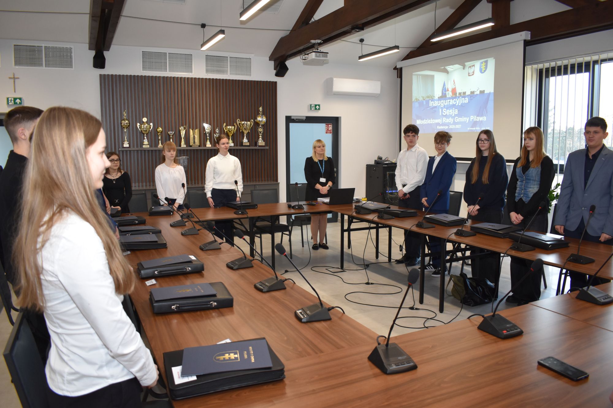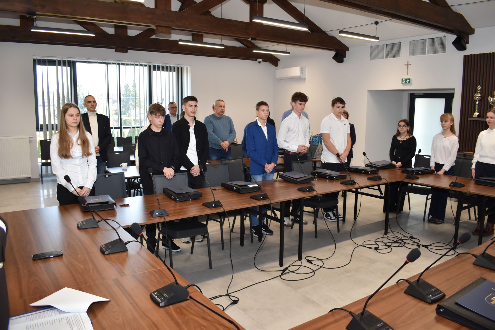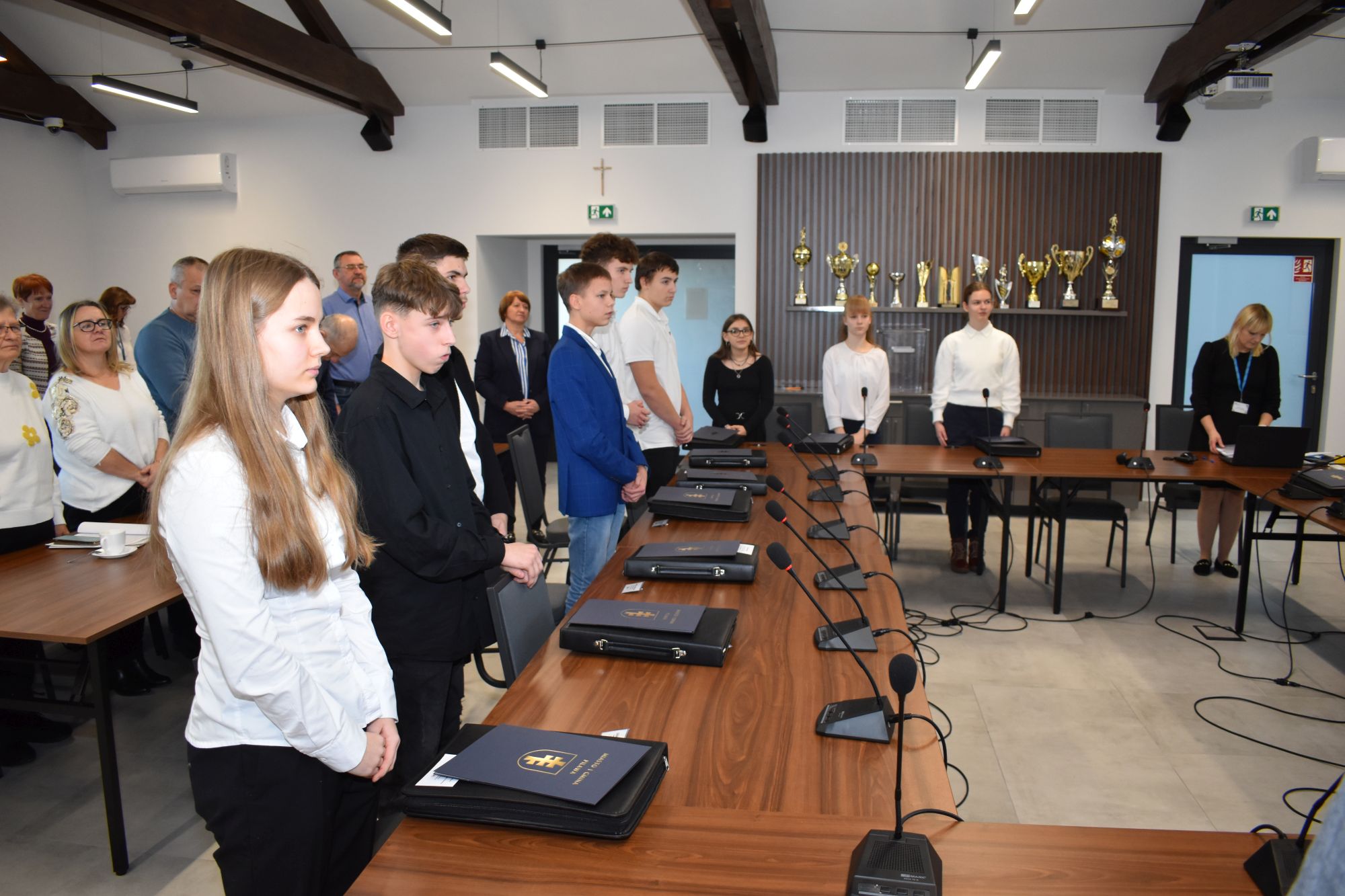 Ważnym punktem spotkania było wręczenie zaświadczeń o wyborze, a następnie wszyscy radni złożyli uroczyste ślubowanie, zobowiązując się do rzetelnego pełnienia swojej funkcji, działania na rzecz wspólnego dobra i reprezentowania potrzeb młodych mieszkańców.