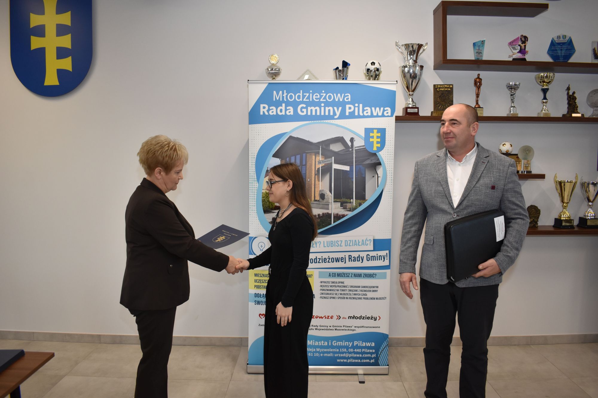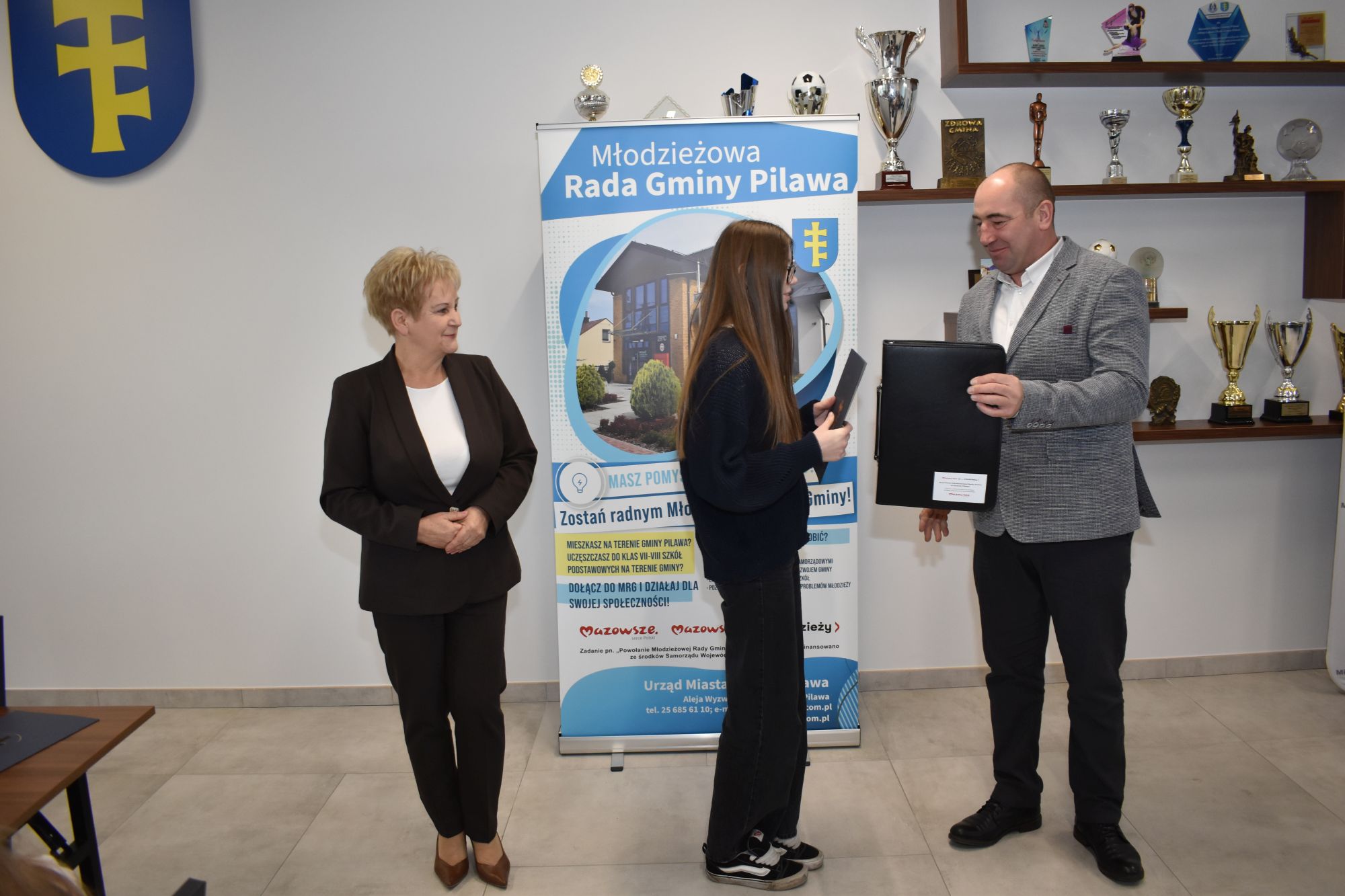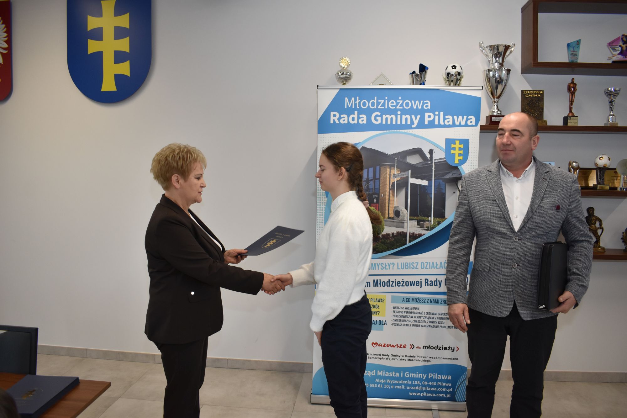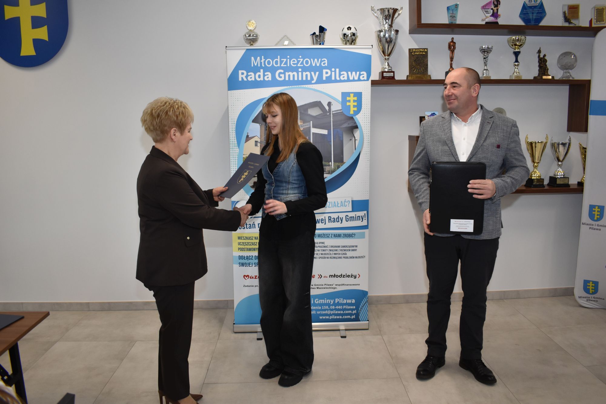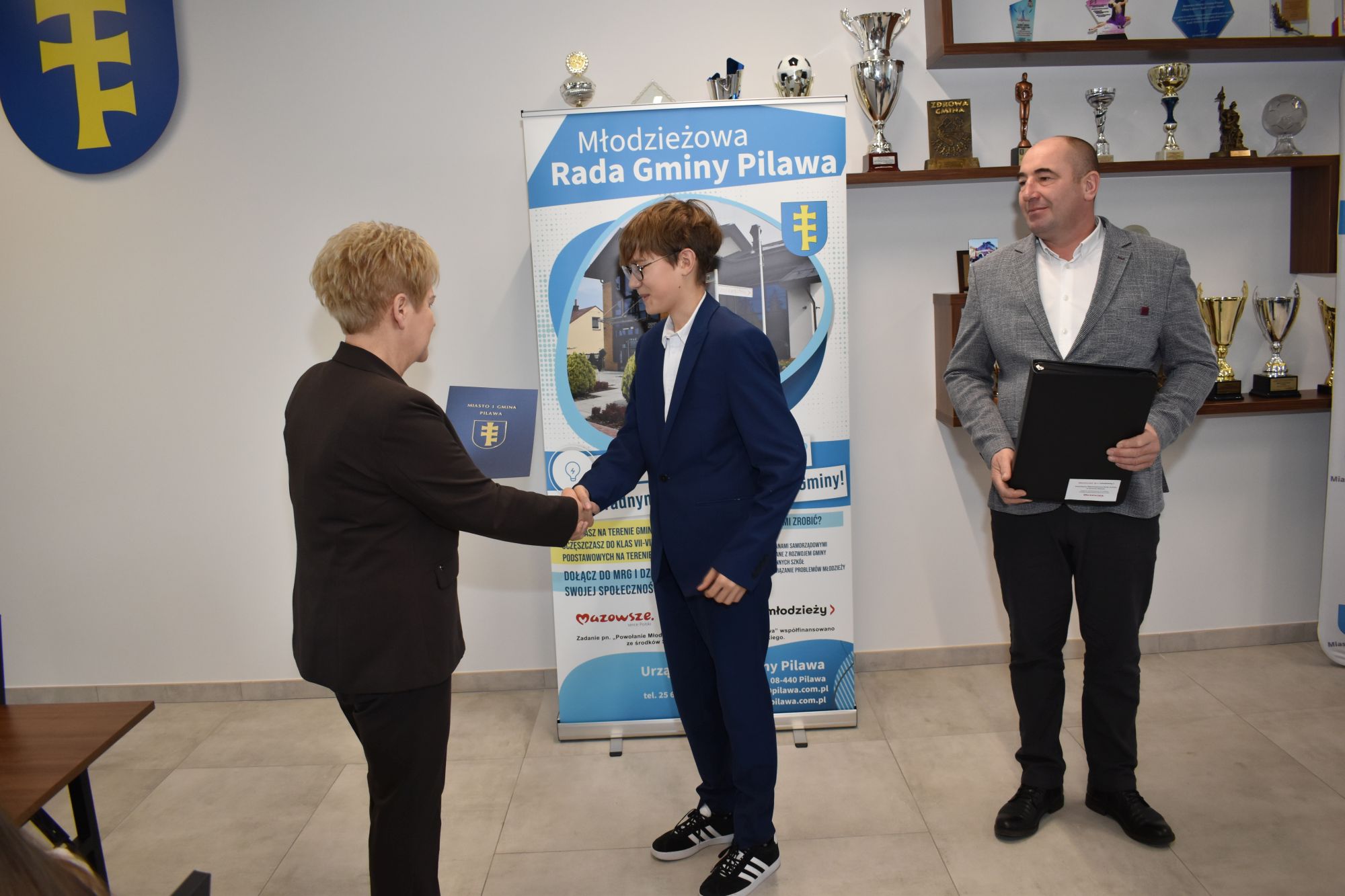 - Przewodniczący Młodzieżowej Rady Gminy – Lena Balas z Publicznej Szkoły Podstawowej w Pilawie,