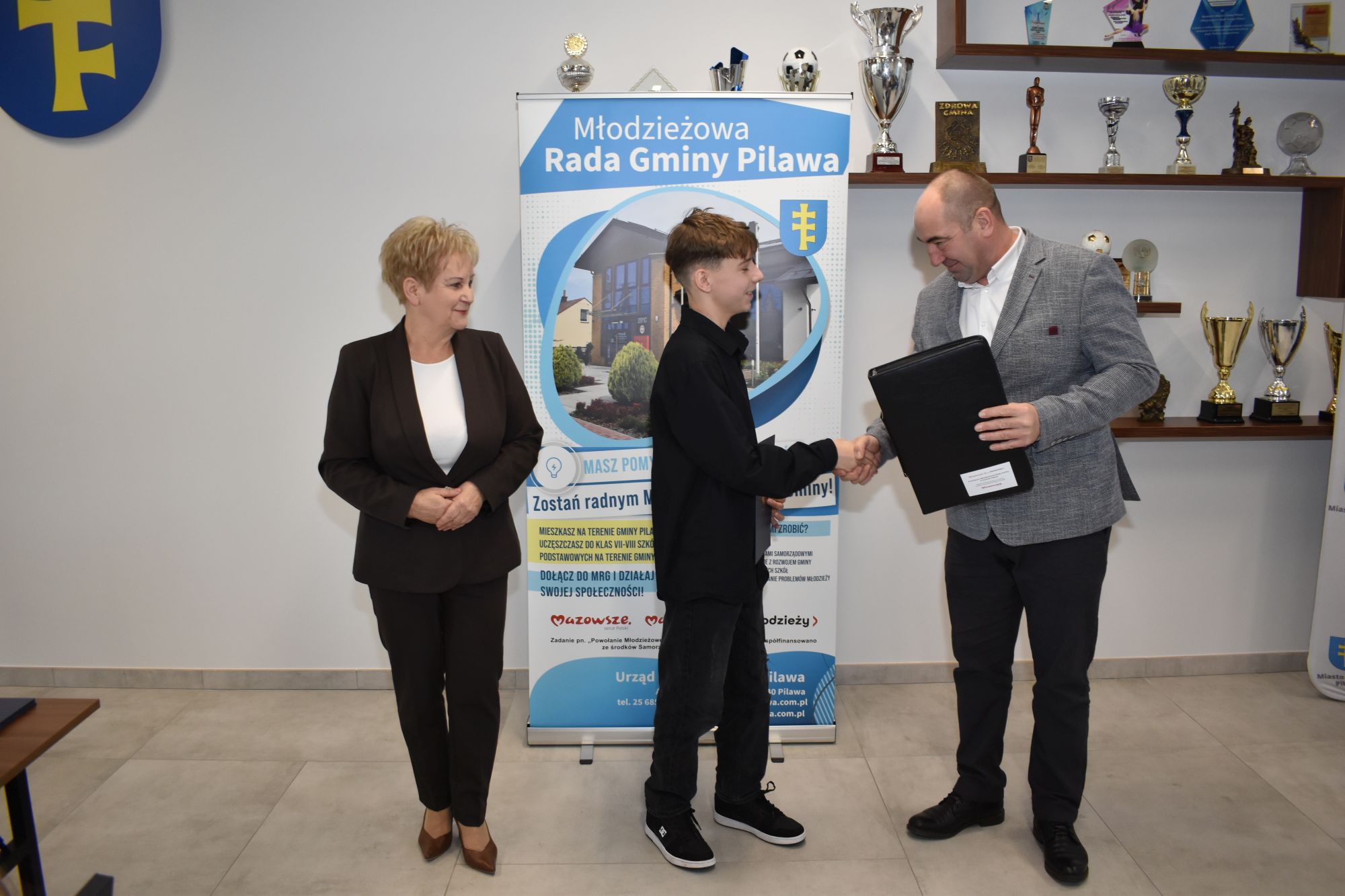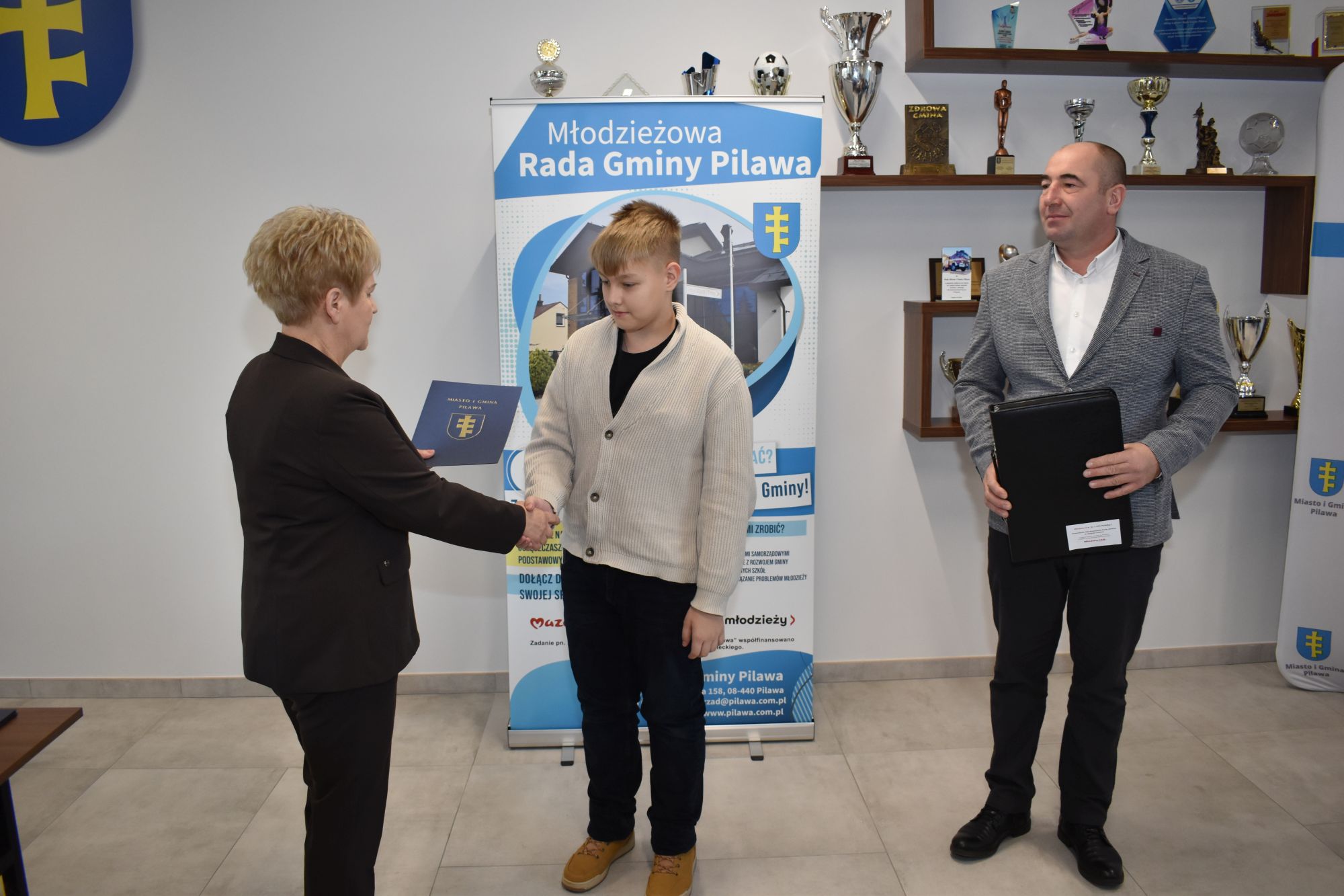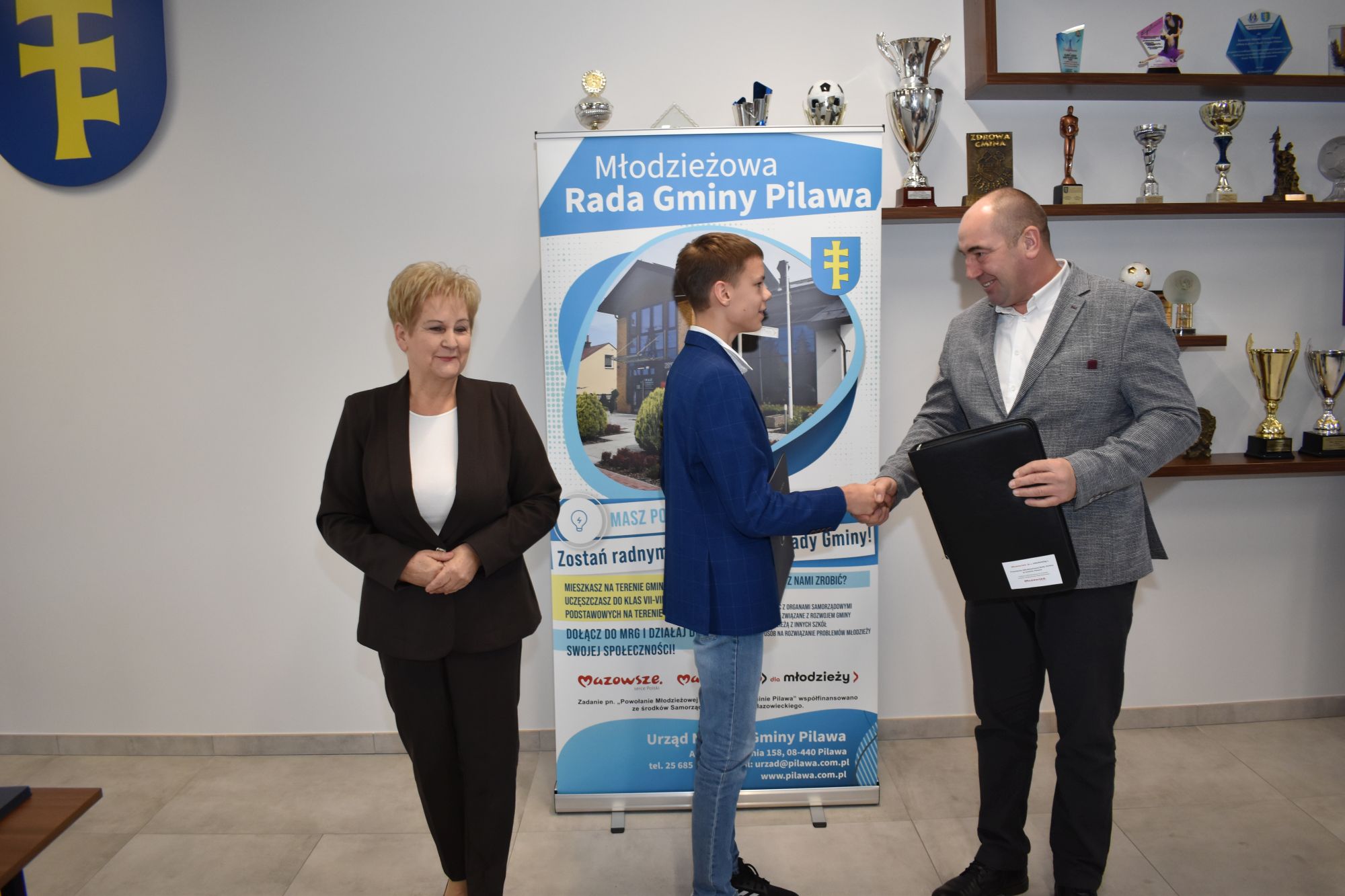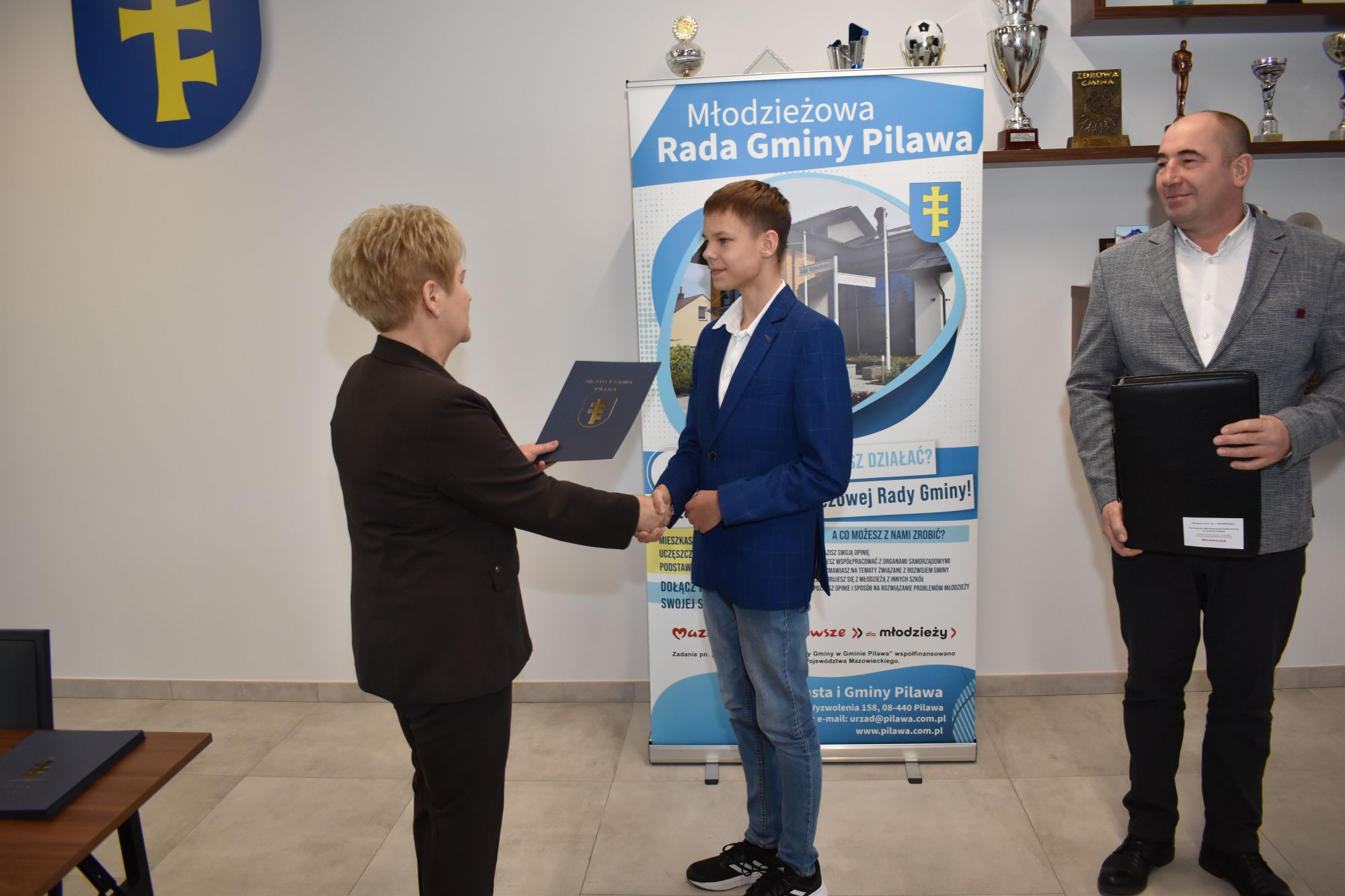 - Sekretarz Młodzieżowej Rady Gminy – Wojciech Jóźwicki z Publicznej Szkoły Podstawowej w Pilawie,