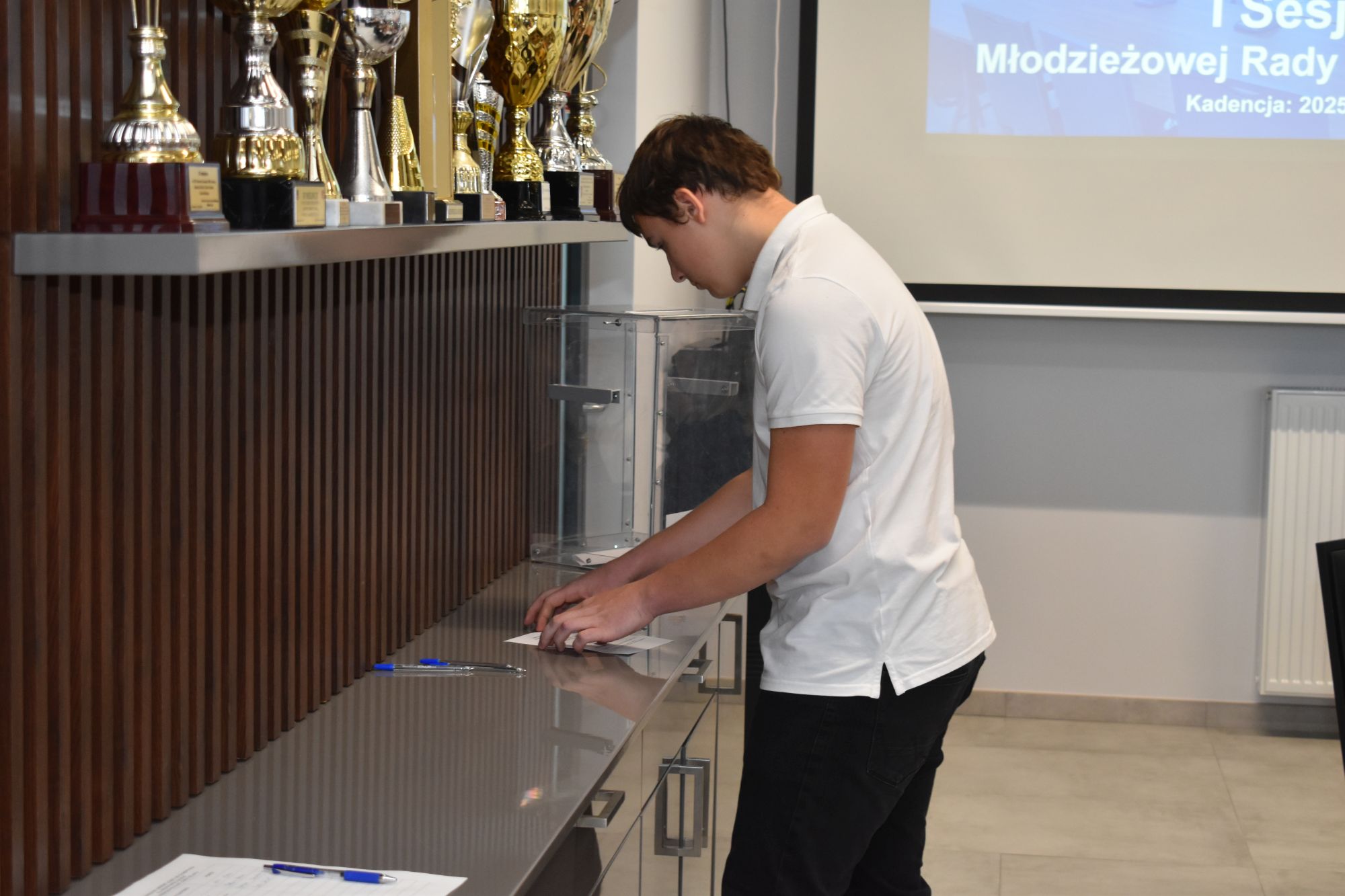 W dalszej części, zgodnie z porządkiem obrad, przeprowadzono wybory do prezydium rady, w tym Przewodniczącego, Wiceprzewodniczącego oraz Sekretarza. Zanim jednak młodzi radni wybrali swojego przewodniczącego w głosowaniu tajnym, dokonano wyboru komisji skrutacyjnej, która czuwała nad prawidłowym przebiegiem głosowania.