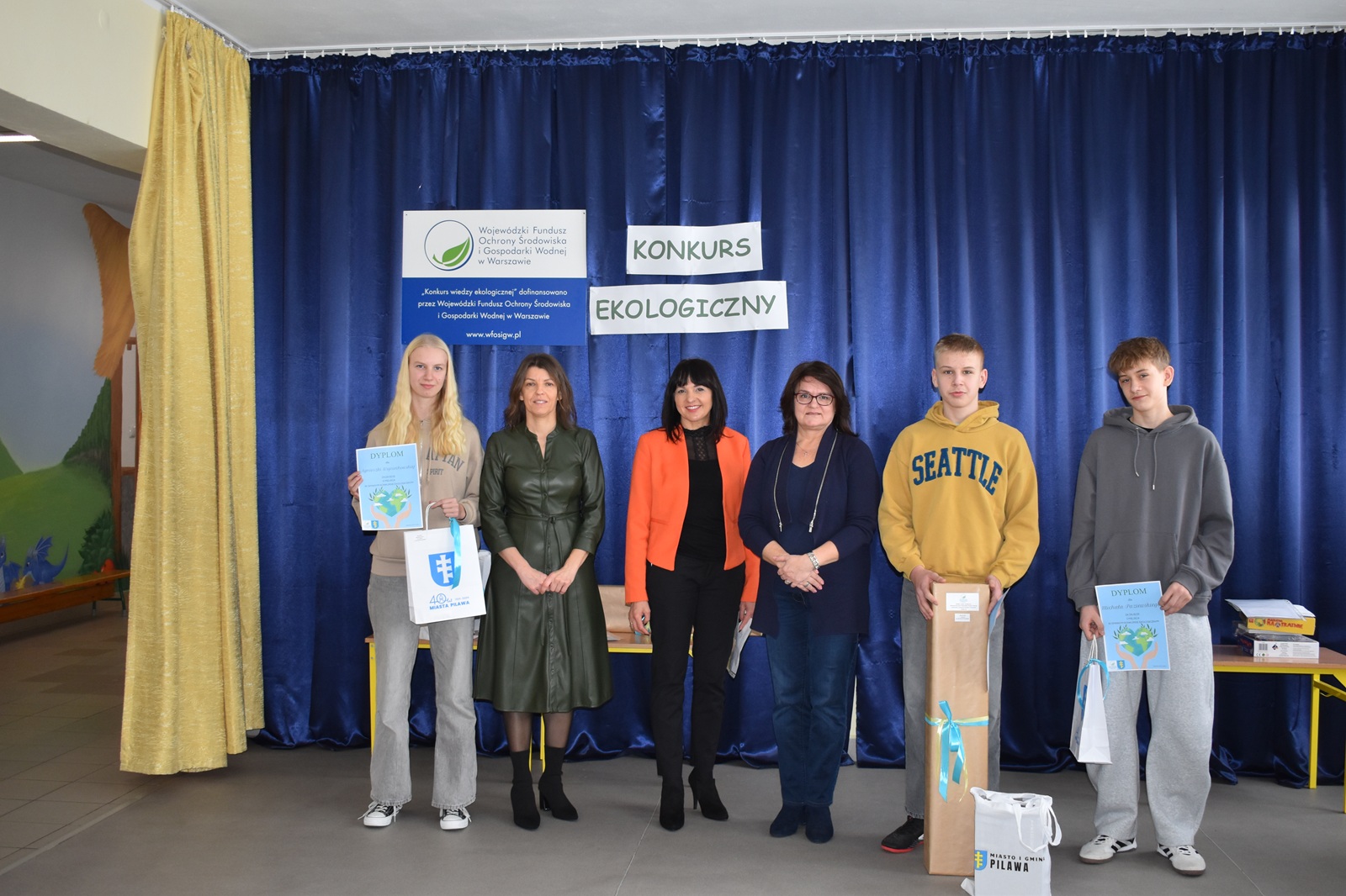 Nagrody zostały wręczone podczas szkolnych apeli przez panią Agnieszkę Dębowską, która w imieniu Burmistrza Miasta i Gminy Pilawa - Albiny Łubian pogratulowała uczniom znakomitych wyników oraz podziękowała za ich zaangażowanie w działania na rzecz ochrony środowiska. Zaznaczyła, że tak liczny udział młodzieży pokazuje ogromną potrzebę i skuteczność edukacji ekologicznej, która kształtuje świadome i odpowiedzialne postawy już od najmłodszych lat.
