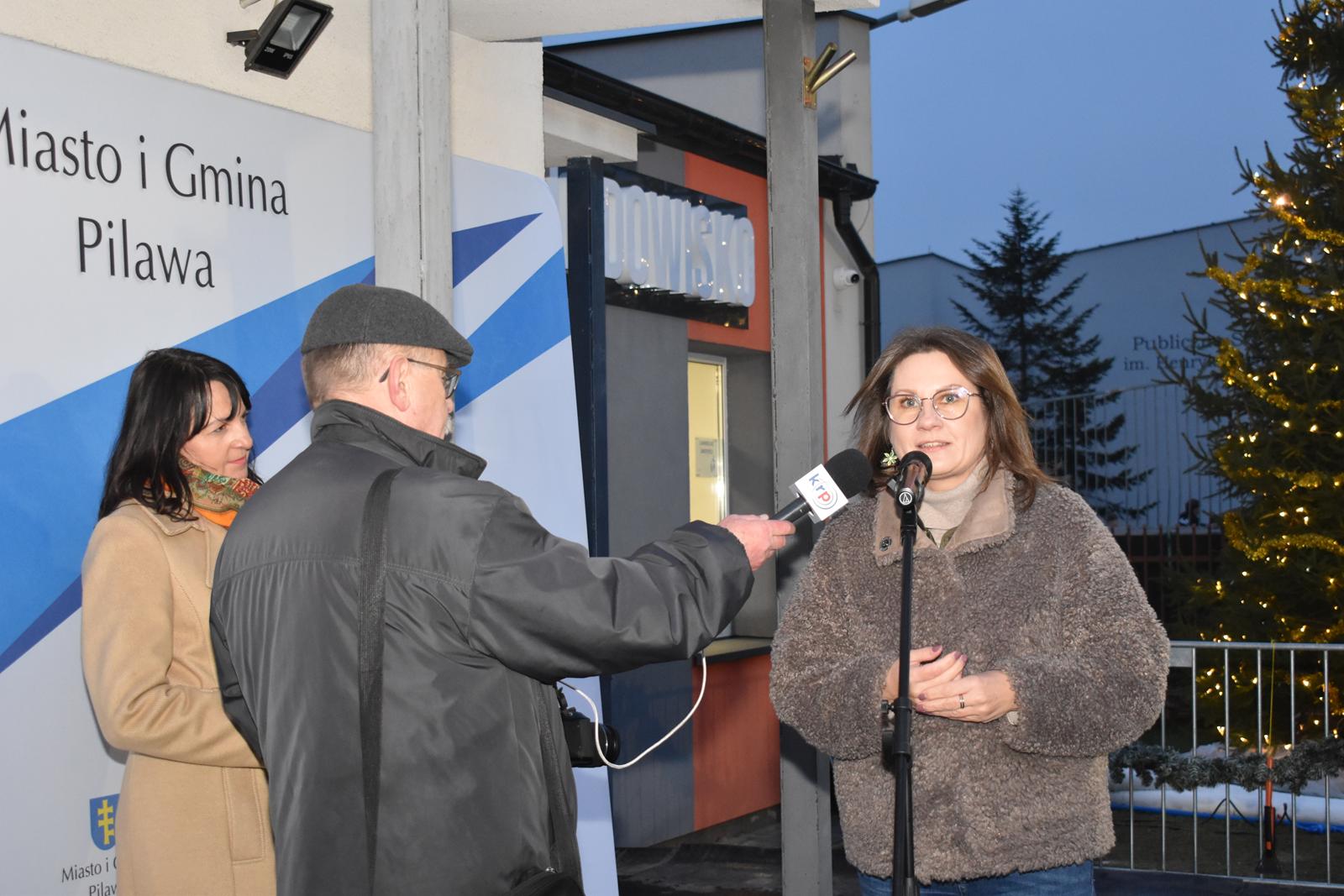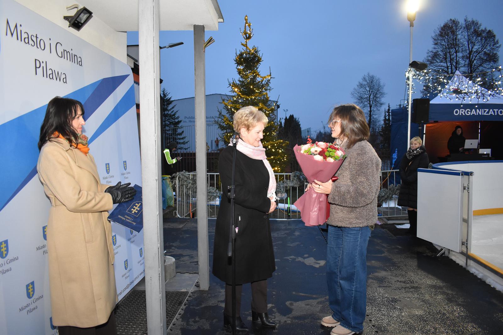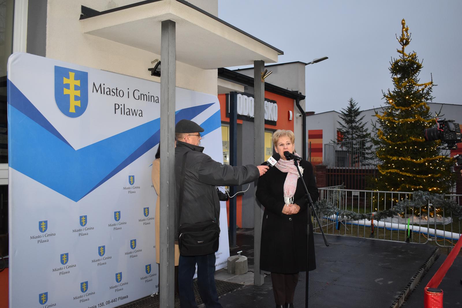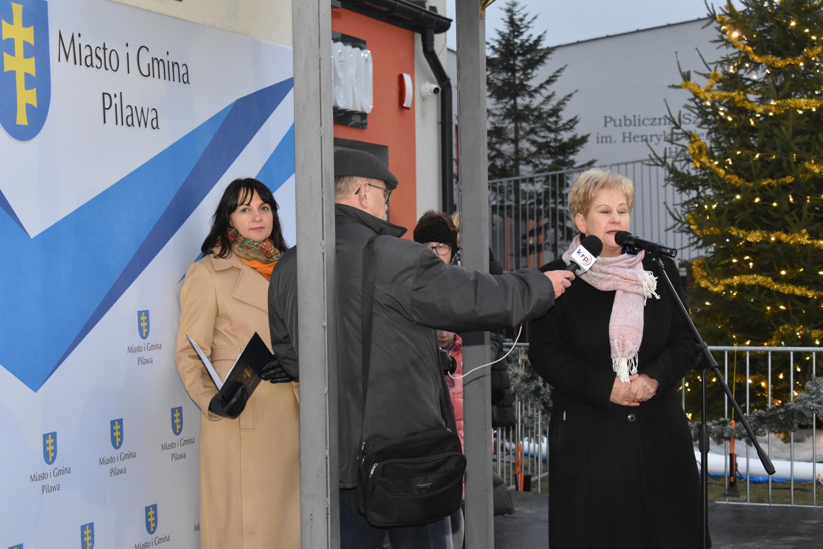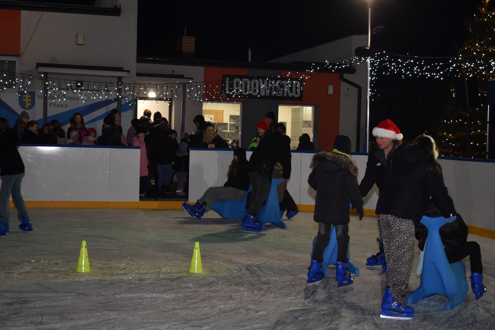 Uroczystość otworzyła Burmistrz Miasta i Gminy Pilawa Albina Łubian. W krótkim wystąpieniu podkreśliła znaczenie budowy lodowiska dla mieszkańców, szczególnie dzieci i młodzieży oraz przedstawiła zakres wykonanych prac. Podziękowała wszystkim zaangażowanym w proces realizację inwestycji, tym którzy dbali o kwestie organizacyjne i techniczne, a także za przyznane samorządowi dofinansowanie. Wyraziła przekonanie, że nowa zimowa atrakcja stanie się miejscem, które będzie łączyć pokolenia, gdzie najmłodsi będą stawiać swoje pierwsze kroki na lodzie, młodzież będzie rozwijać swoje sportowe pasje, a dorośli chętnie znajdą chwilkę na aktywność na świeżym powietrzu w zimowej aurze. Na zakończenie życzyła wszystkim bezpiecznej i dobrej zabawy oraz wielu radosnych chwil spędzonych na lodowisku.
