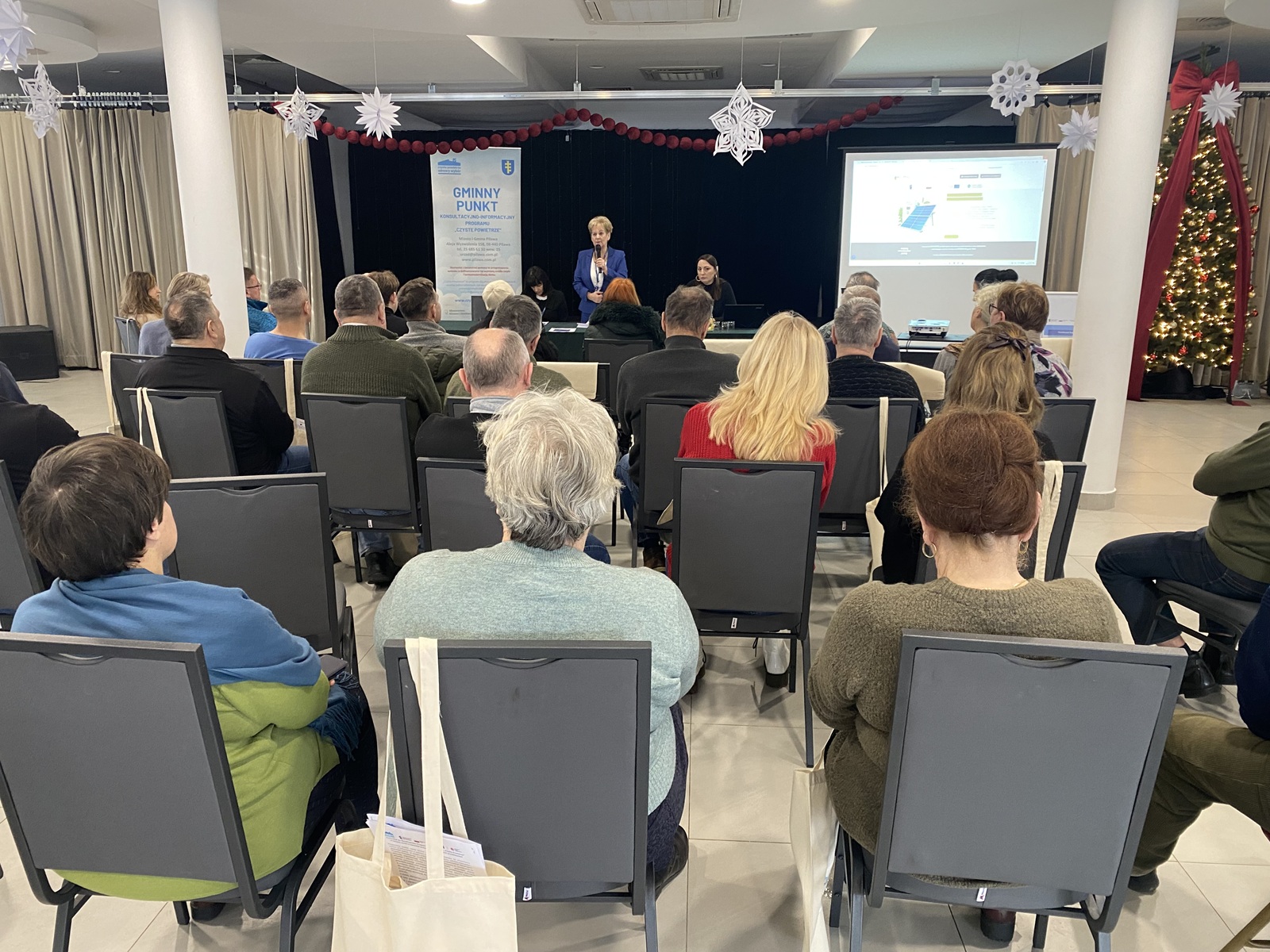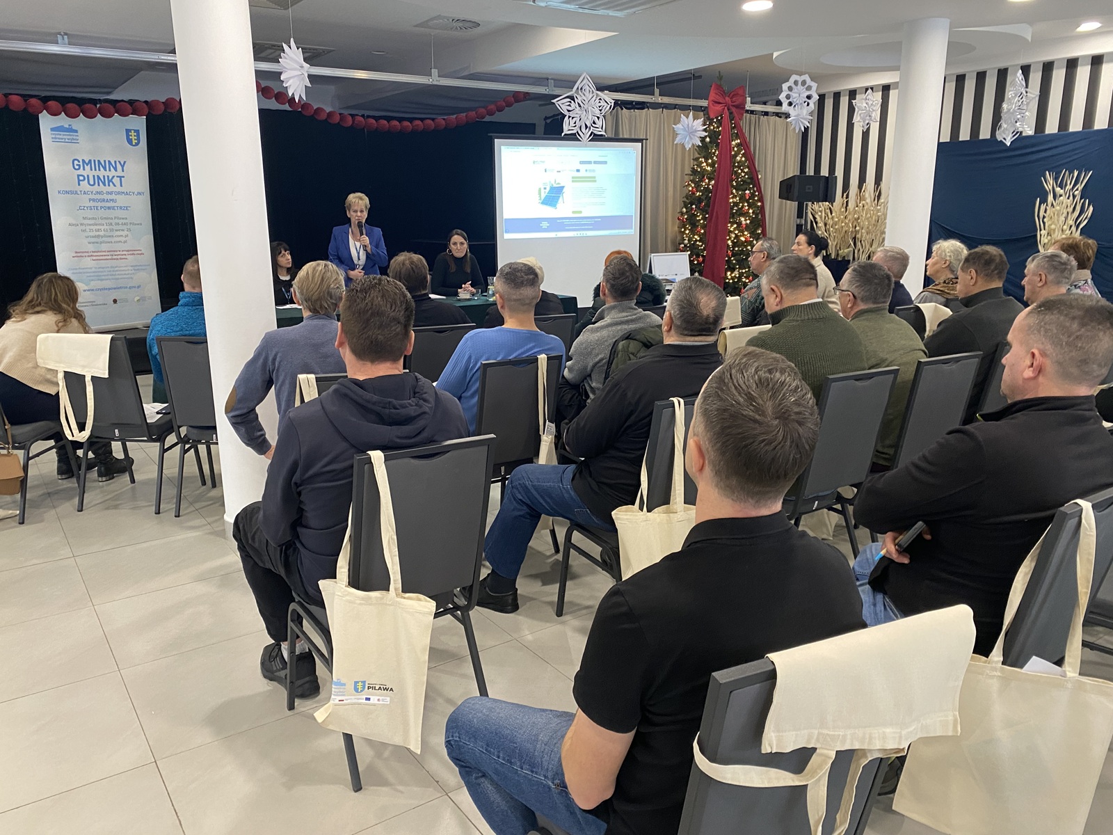 Spotkanie, które odbyło się 15 stycznia 2026 r. w Miejsko-Gminnym Ośrodku Kultury w Pilawie rozpoczęła i powitała bardzo licznie zgromadzonych uczestników Burmistrz Pani Albina Łubian, podkreślając znaczenie Programu Czyste Powietrze dla zdrowia mieszkańców i ochrony powietrza w naszej gminie.