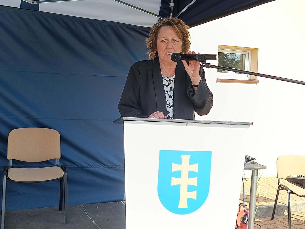 „– Bez udziału Urzędu Gminy, bez udziału MGOKu, bez udziału Pani Burmistrz Albiny Łubian, bez udziału Państwa, bez udziału orkiestry, bez udziału pocztów sztandarowych, strażaków – ta uroczystość nie miałaby takiej rangi” – wyznała, dziękując radnym Rady Miejskiej za ufundowanie kamienia oraz sfinansowanie niedzielnego wydarzenia.