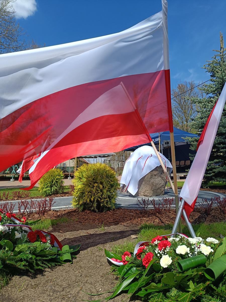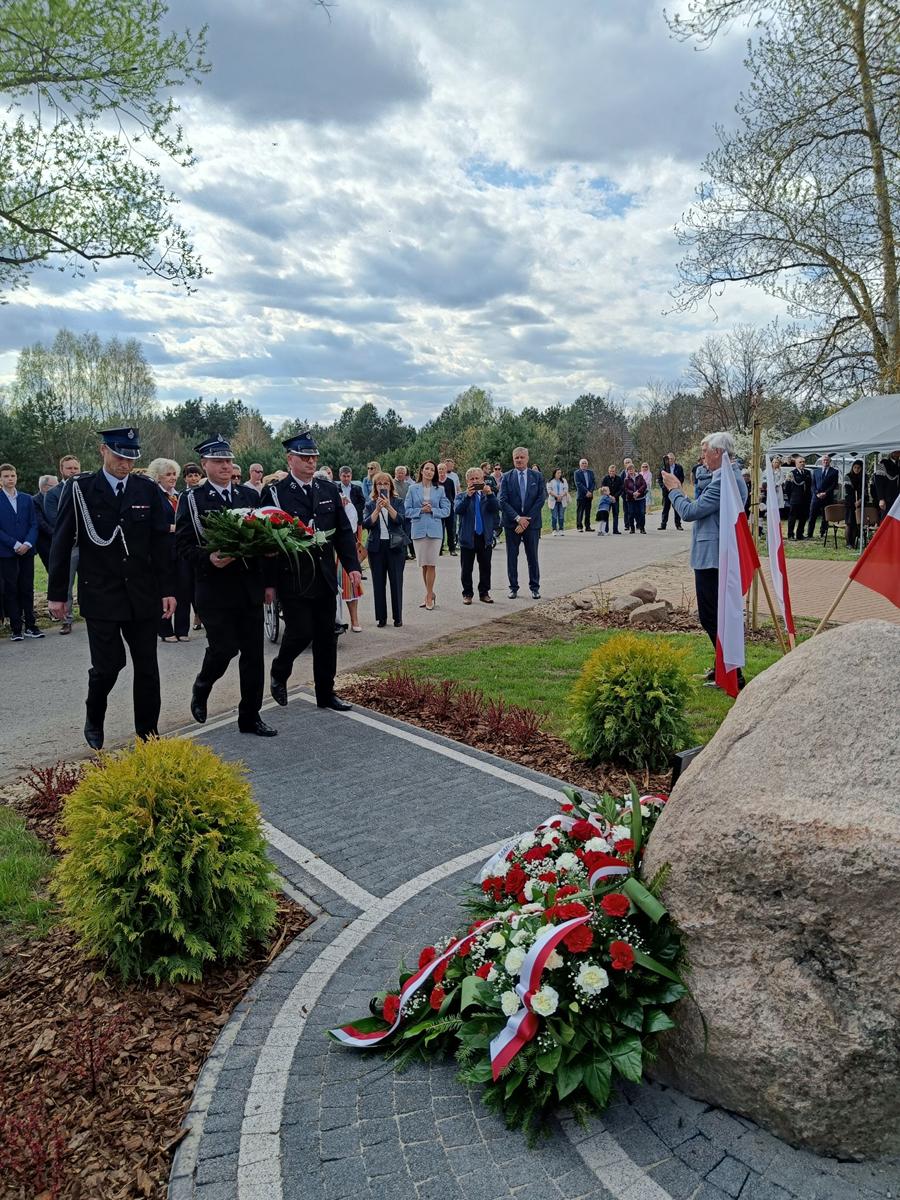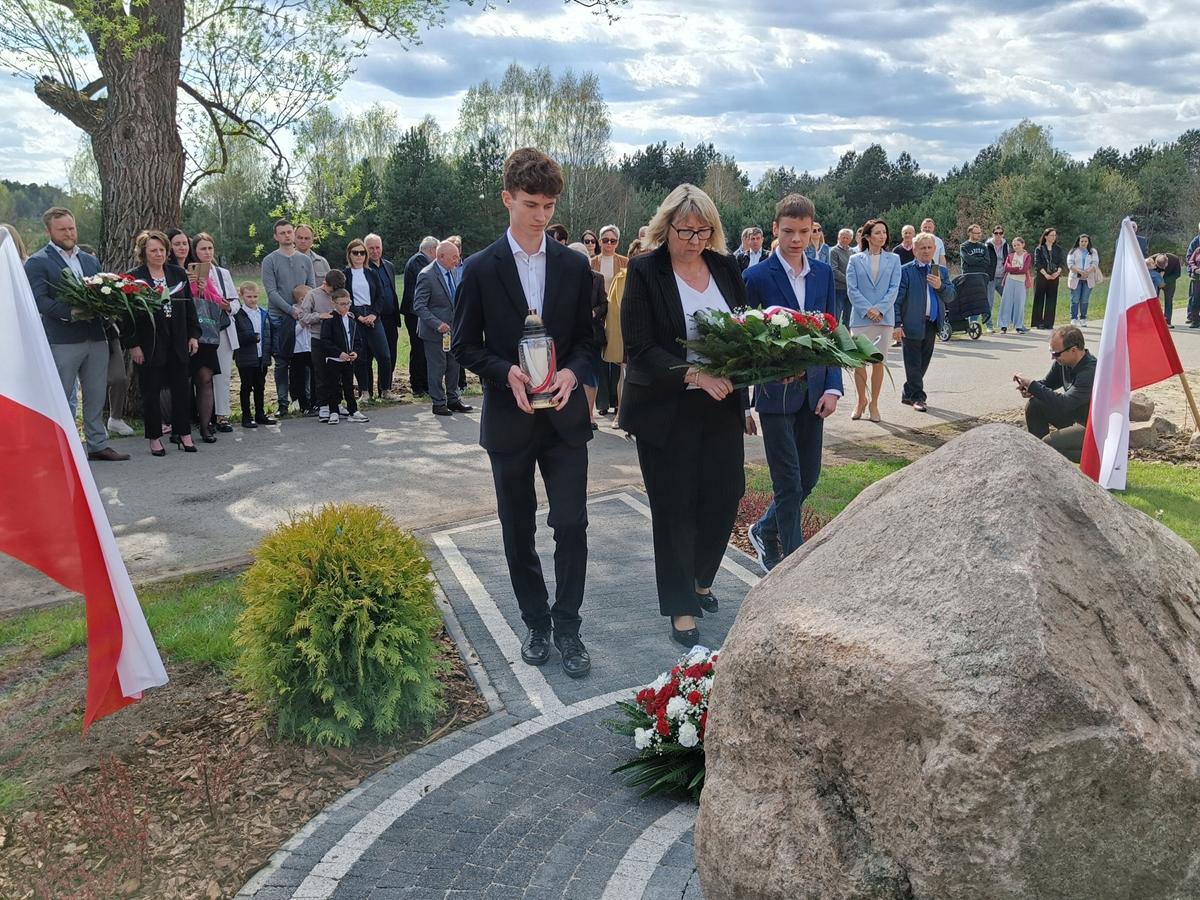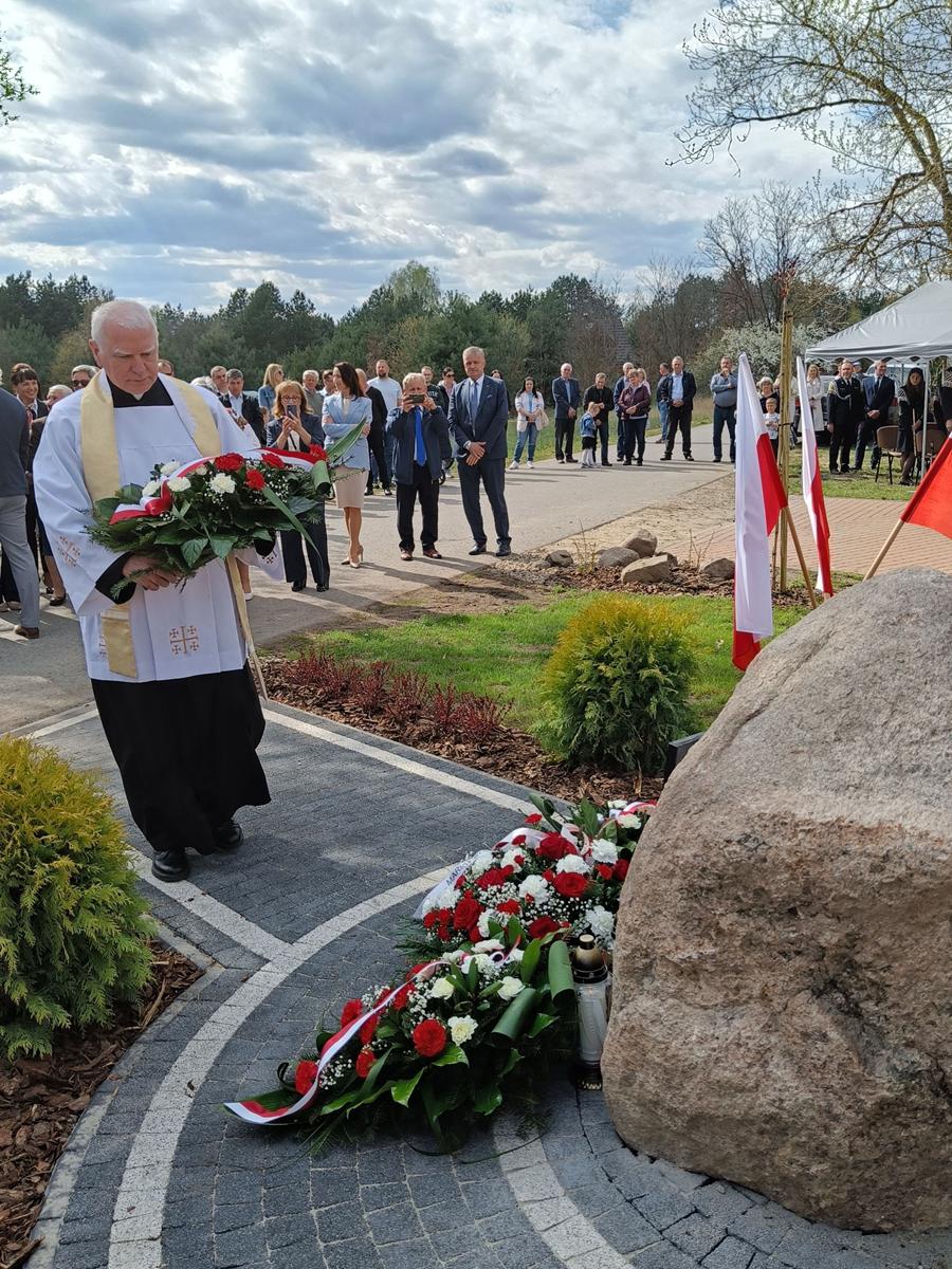 Po odsłonięciu kamienia i poświęceniu go przez ks. Marka Kujdę, delegacje złożyły kwiaty i zapaliły znicze.