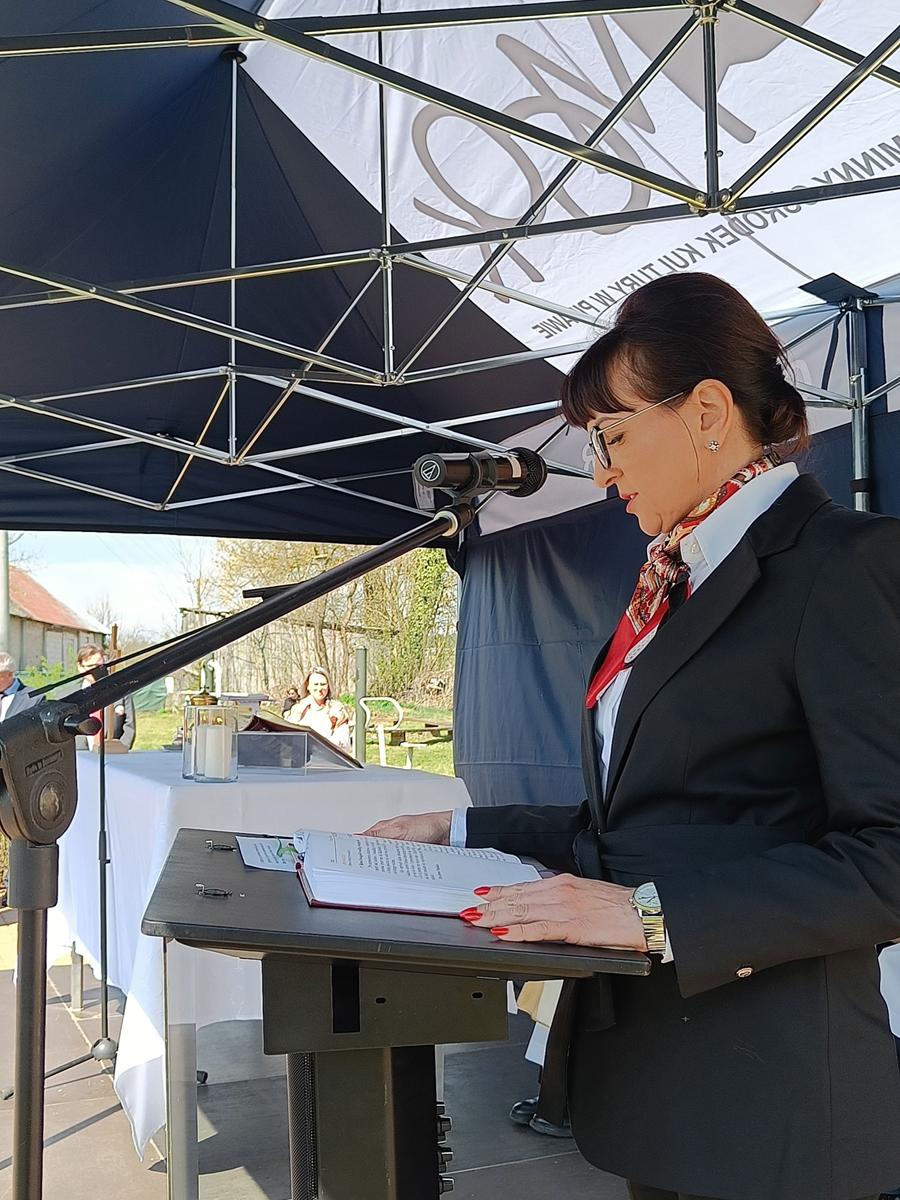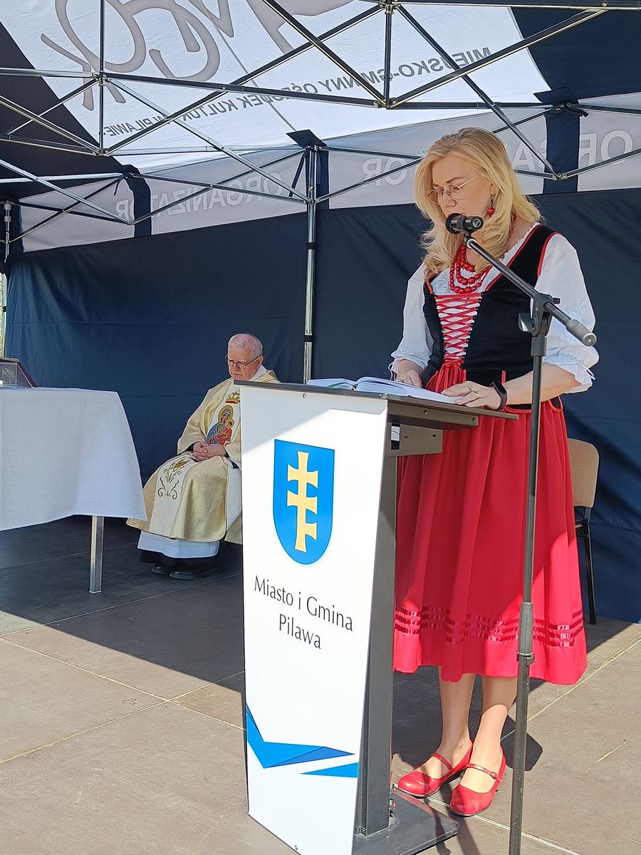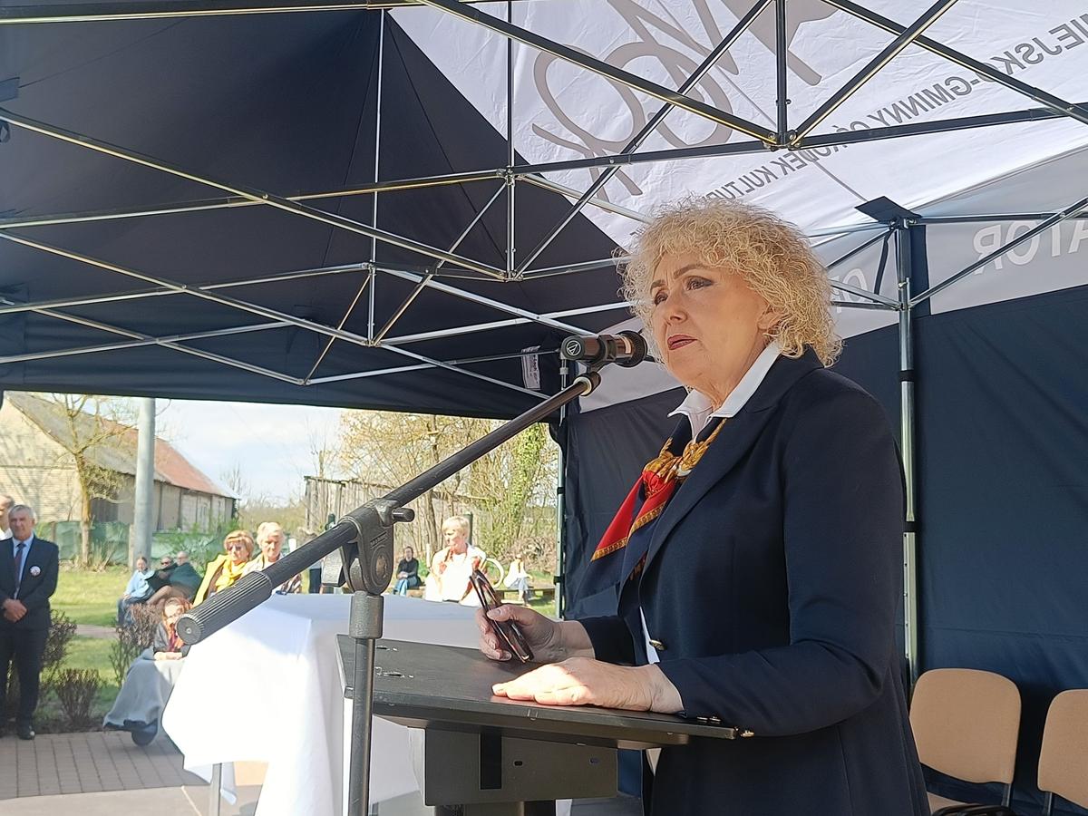 Pani Sołtys skierowała słowa wdzięczności do wszystkich, którzy przyczynili się do utworzenia miejsca pamięci w Kalonce oraz zaangażowali się w organizację uroczystości.