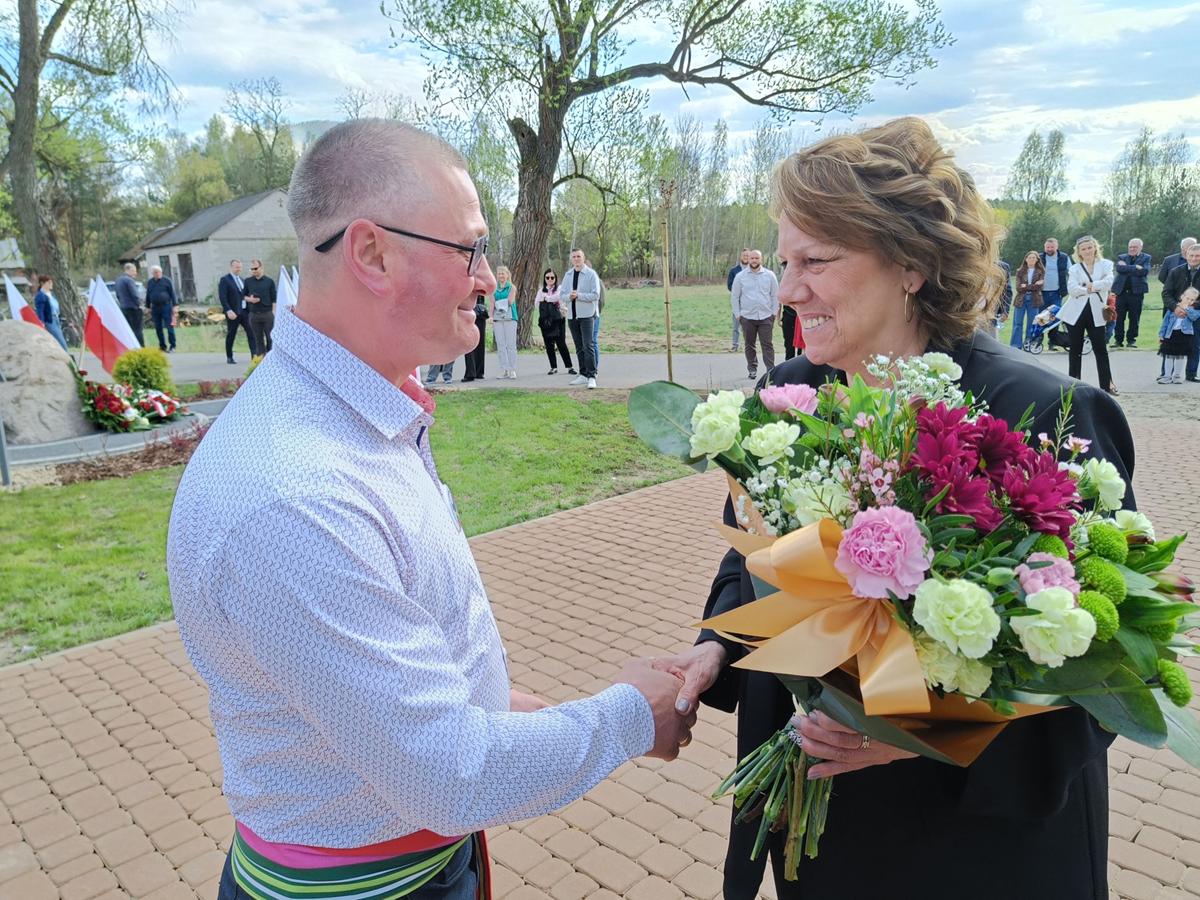 Mieszkańcy Kalonki za wybudowanie miejsca pamięci i organizację uroczystości złożyli podziękowanie dla Pani Burmistrz Albiny Łubian