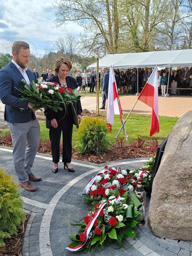 Zastępca Burmistrza dodała, że uroczystość jest dowodem na to, że chcemy pamiętać i że pamięć jest silniejsza niż czas, a kamień jest nie tylko znakiem historii, ale też znakiem naszej odpowiedzialności za to, aby kolejne pokolenia pamiętały, co wydarzyło się w Kalonce.